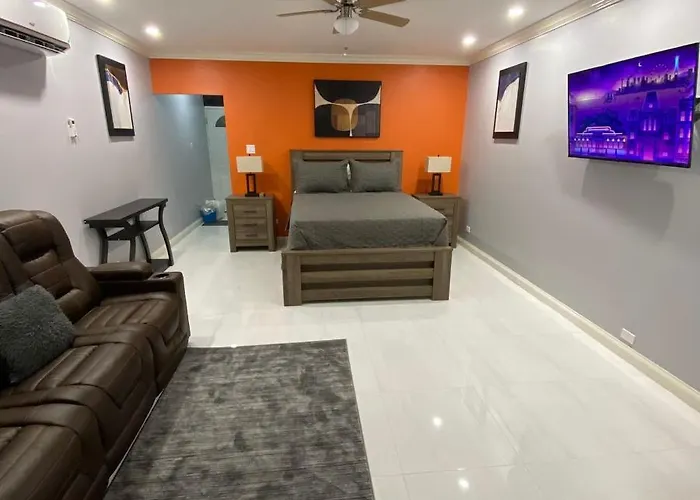 K&S Seaview Luxury Apartment Montego Bay está situado a unos 5 minutos a pie de Moods Night Club y a 5 km del aeropuerto Internacional Sir Donald Sangster.